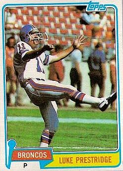 Luke Prestridge was a punter with a 6-year career in the National Football League. He was selected to the Pro Bowl after the 1982 season as a member of the Denver Broncos.